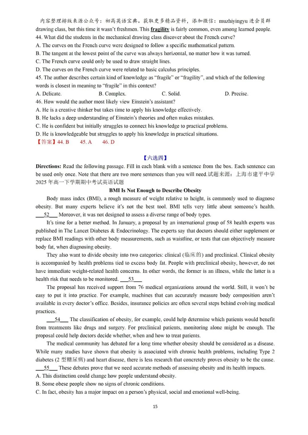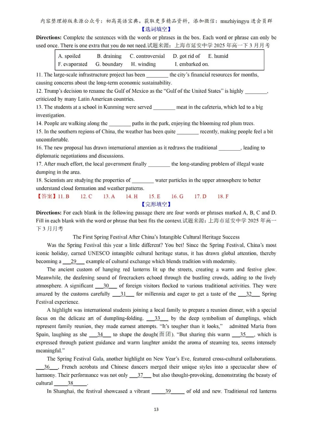 2025年上海新高二四校八大开学考题型汇编1-2:语法填空&十一选十40篇