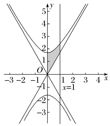 (2)若直线x=0,x=1在第一象限内与C及其渐近线围成如图阴影部分所示的图形,求阴影图形绕x轴旋转一周所得几何体的体积.