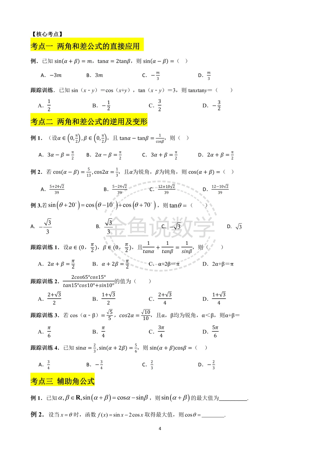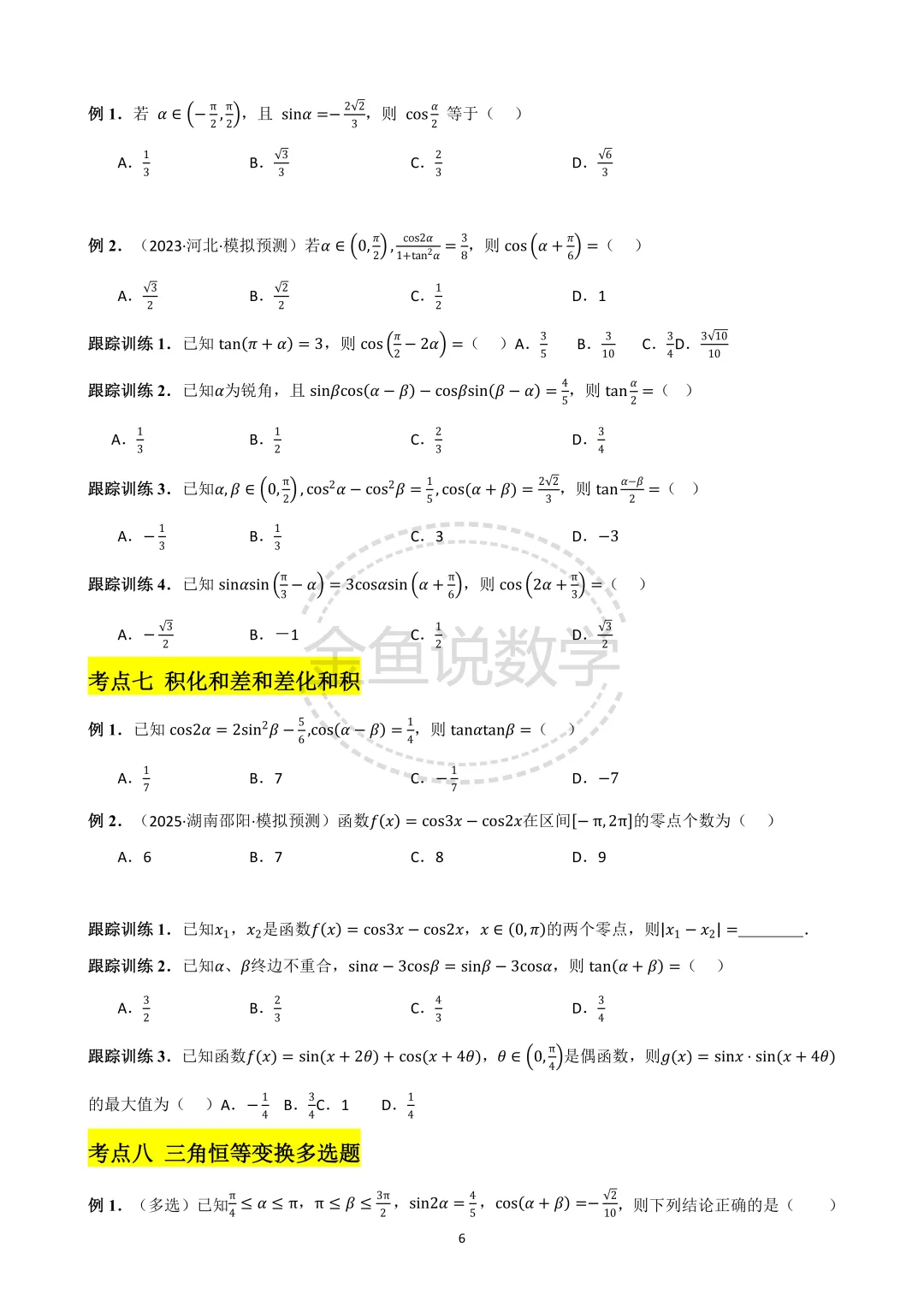 >2026届高三培优专题讲义之专题六 三角恒等变换