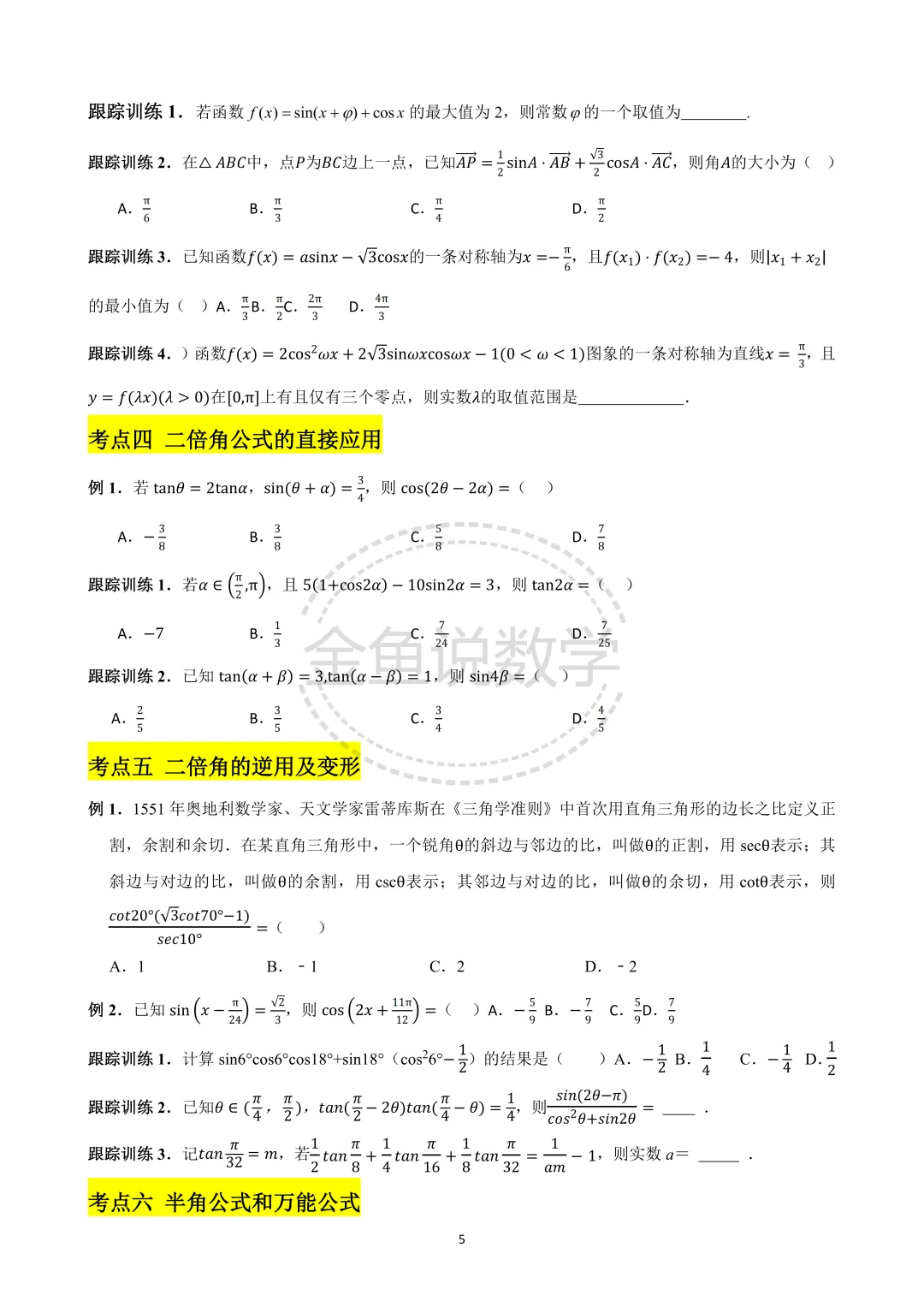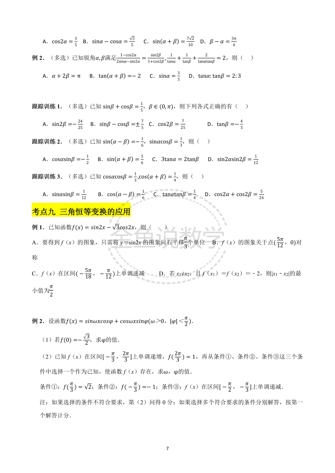 2026届高三培优专题讲义之专题六 三角恒等变换