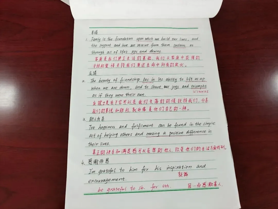 与教案相映成趣的,是学生们的纠错本。纠错本上,错题摘录条理清晰,错因分析一针见血,订正过程详尽规范,更有不少学子附上心得感悟与拓展延伸,将“错题”化为“宝藏”,让反思成为成长的阶梯,这些细节生动再现了课堂上专注求索的求学场景,展现出我校学子勤勉笃行、善学善思的良好风貌。