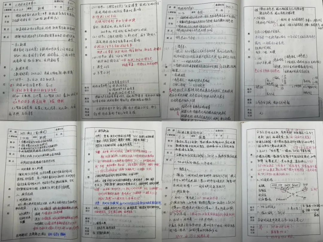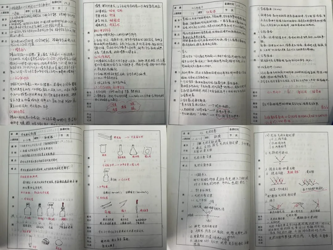 这些图文并茂的备课本,是老师一遍遍优化知识结构、一次次思考教学方法的智慧结晶。老师们将自己的思考融入备课的过程中,根据班级学情设计出最适合的教案,在课堂上带领学生们去探索知识的世界。