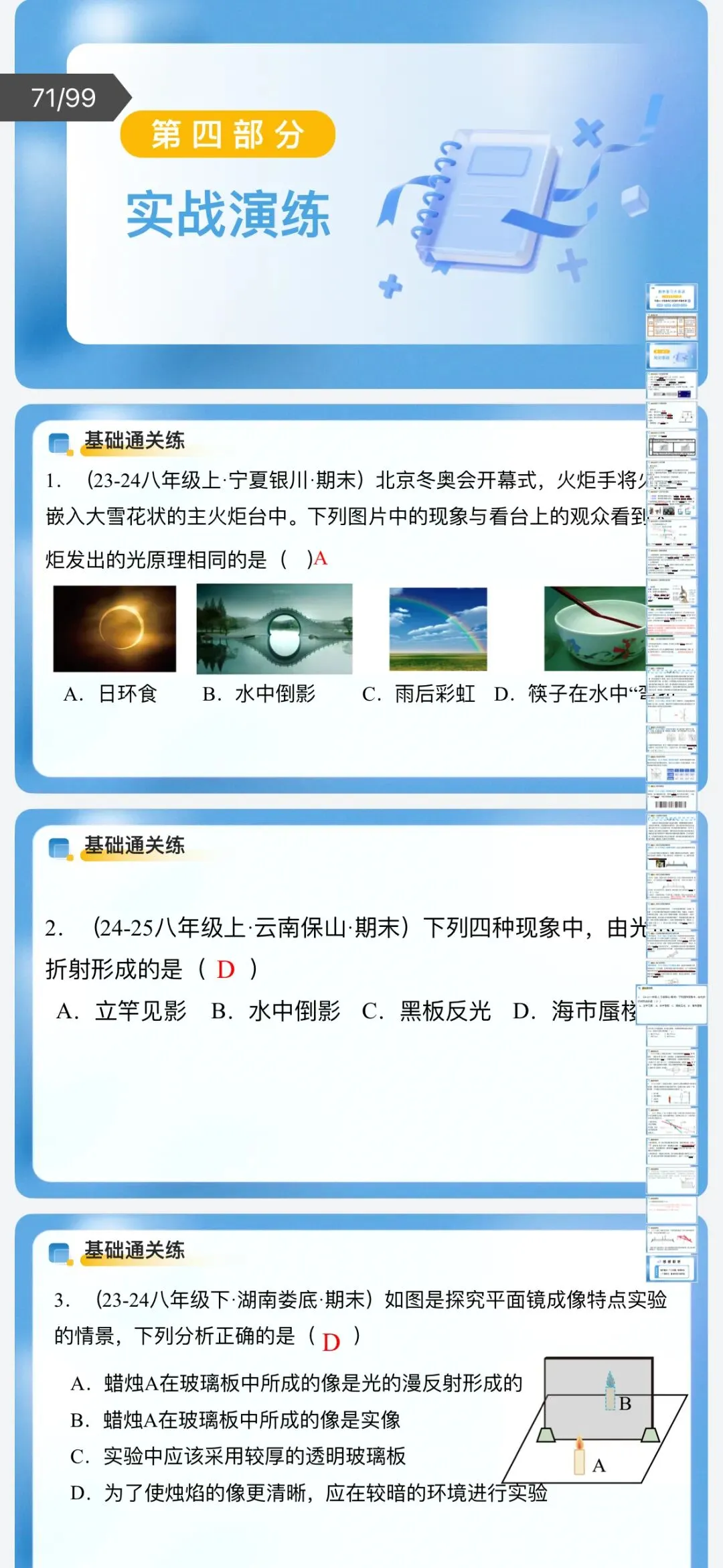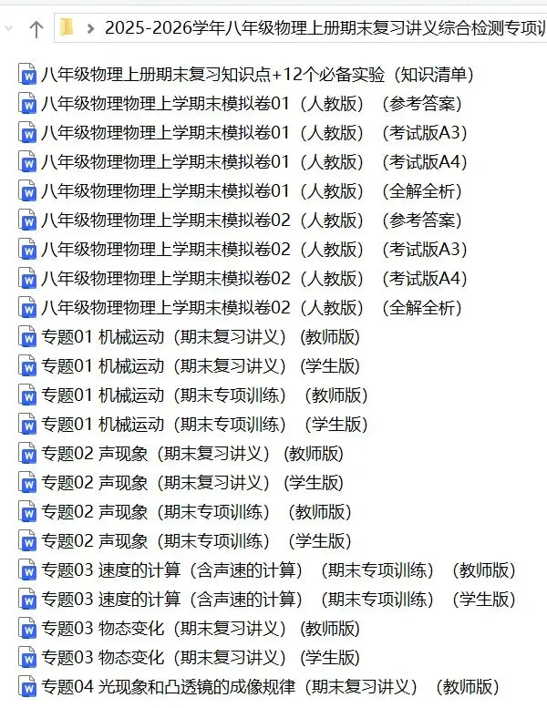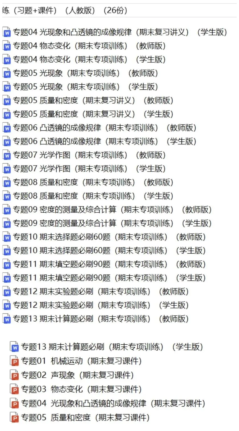 >2025年八上物理人教版:期末复习讲义综合检测专项训练(习题+课件)26份含答案解析 | 完整电子版文档可下载打印