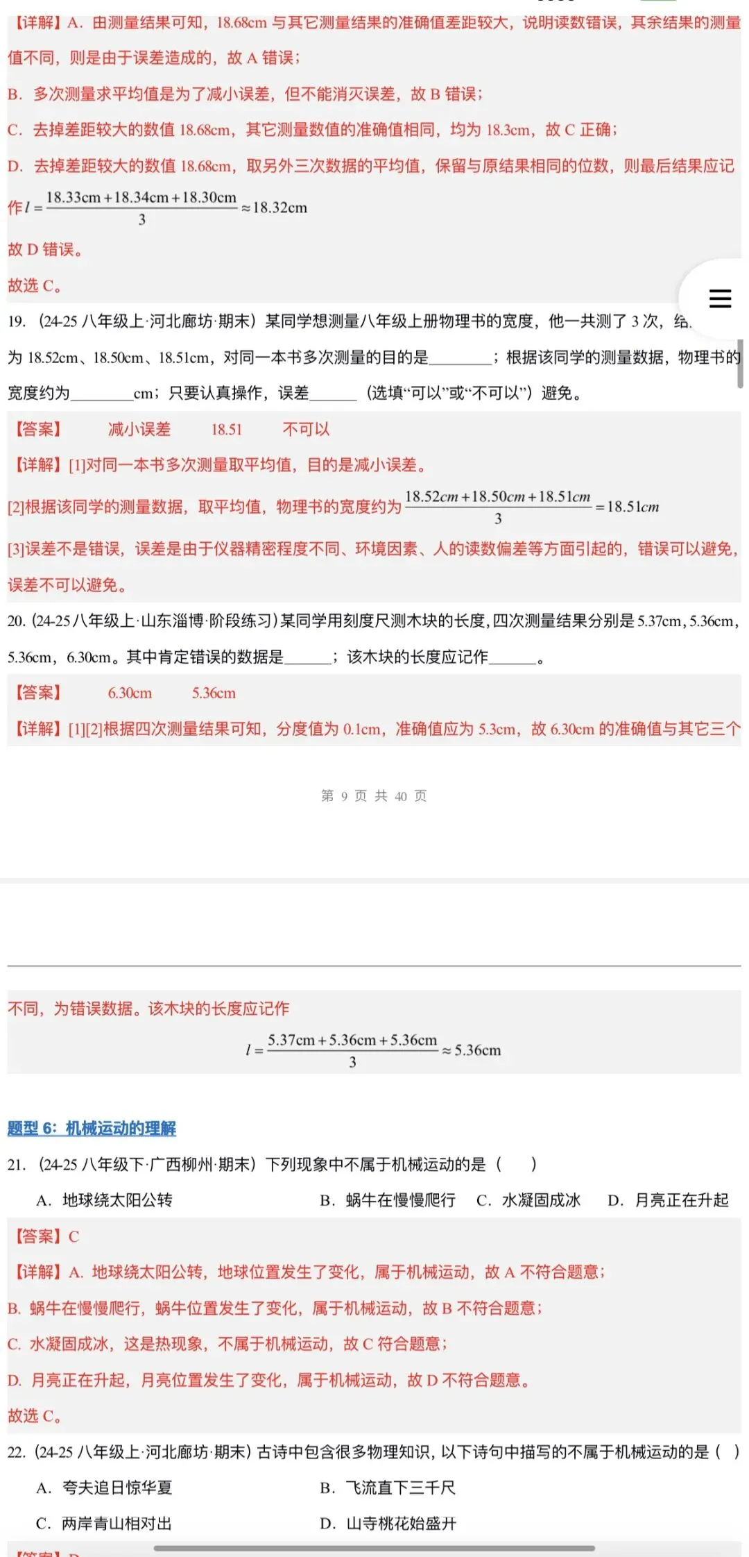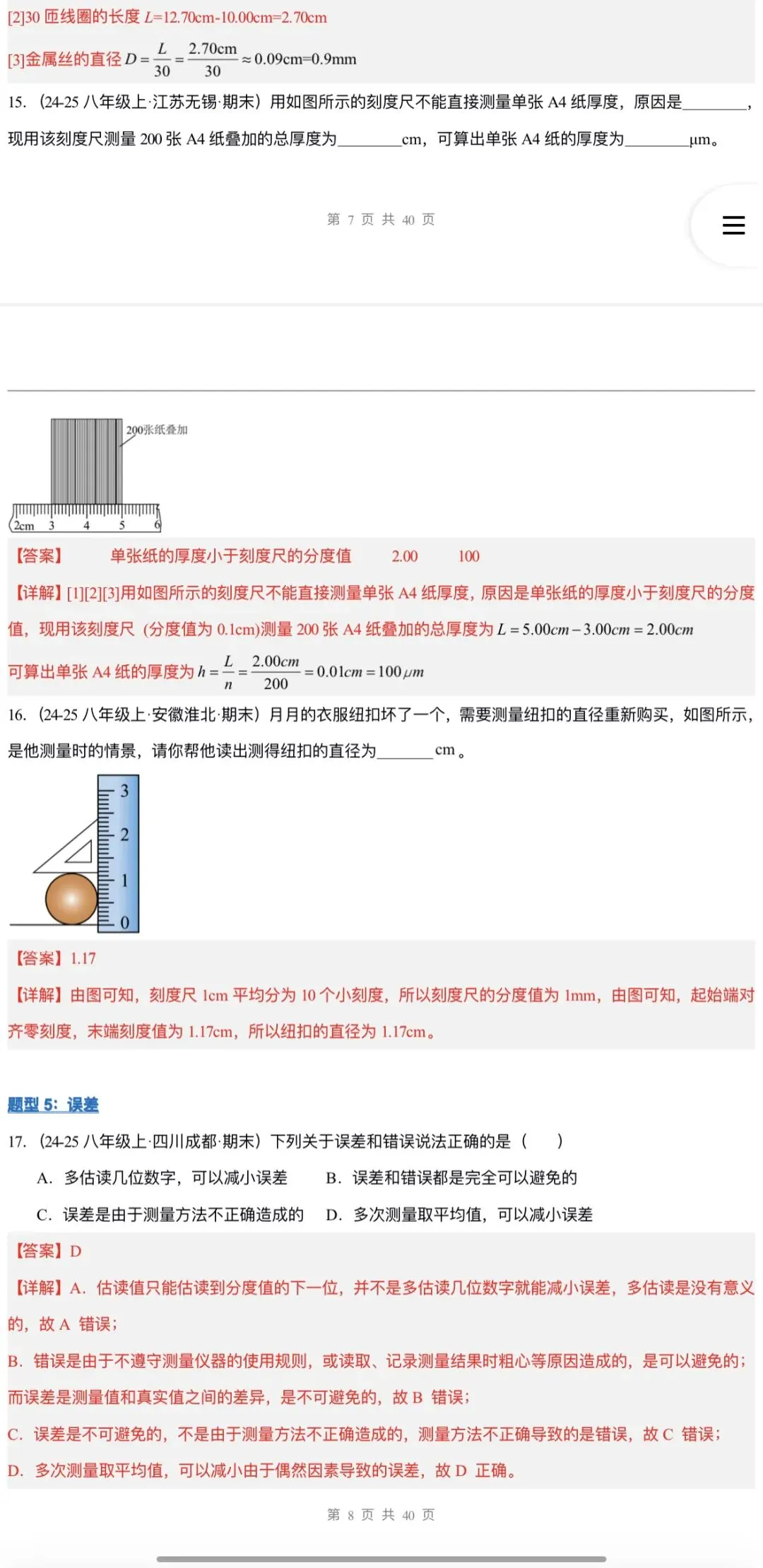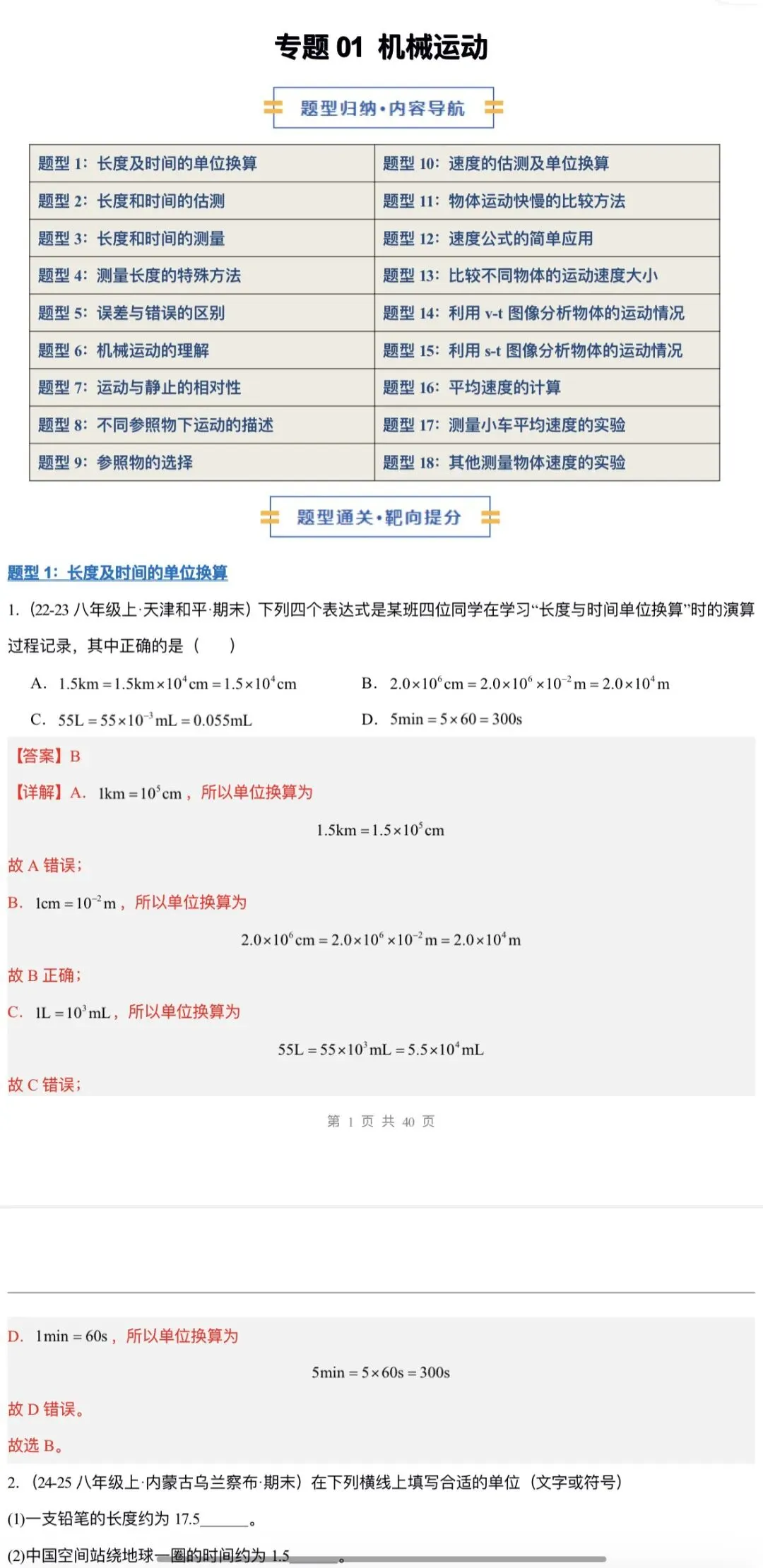 >2025年八上物理人教版:期末复习讲义综合检测专项训练(习题+课件)26份含答案解析 | 完整电子版文档可下载打印