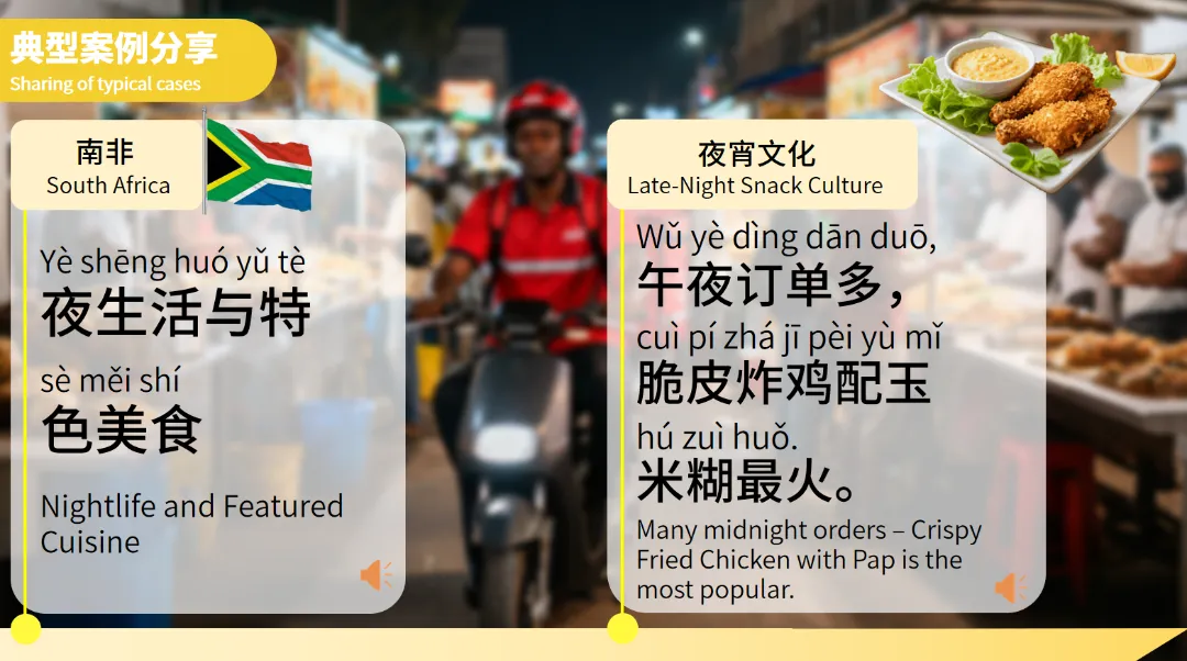 通过这个案例,学生可以了解到南非的夜宵文化和特色美食。