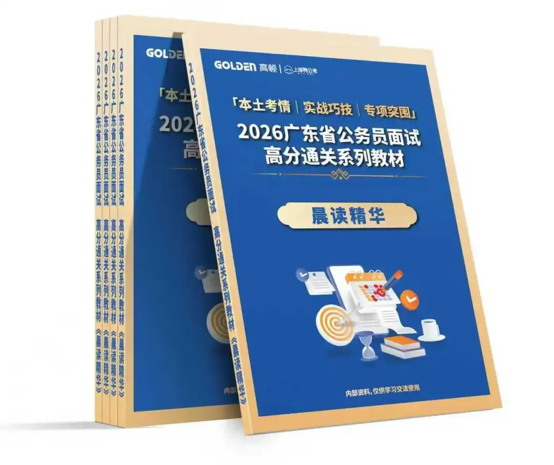 为进一步夯实学员的面试素养积累,助力其形成兼具本土特色与理论高度的答题表达,教研团队专门抽调4名熟悉广东政务热点的核心讲师,结合省考面试素养类考点的ming题趋势,打造了专属的《晨读精华》素养积累资料,该资料堪称广东省考面试高分必备的素养提升指南。