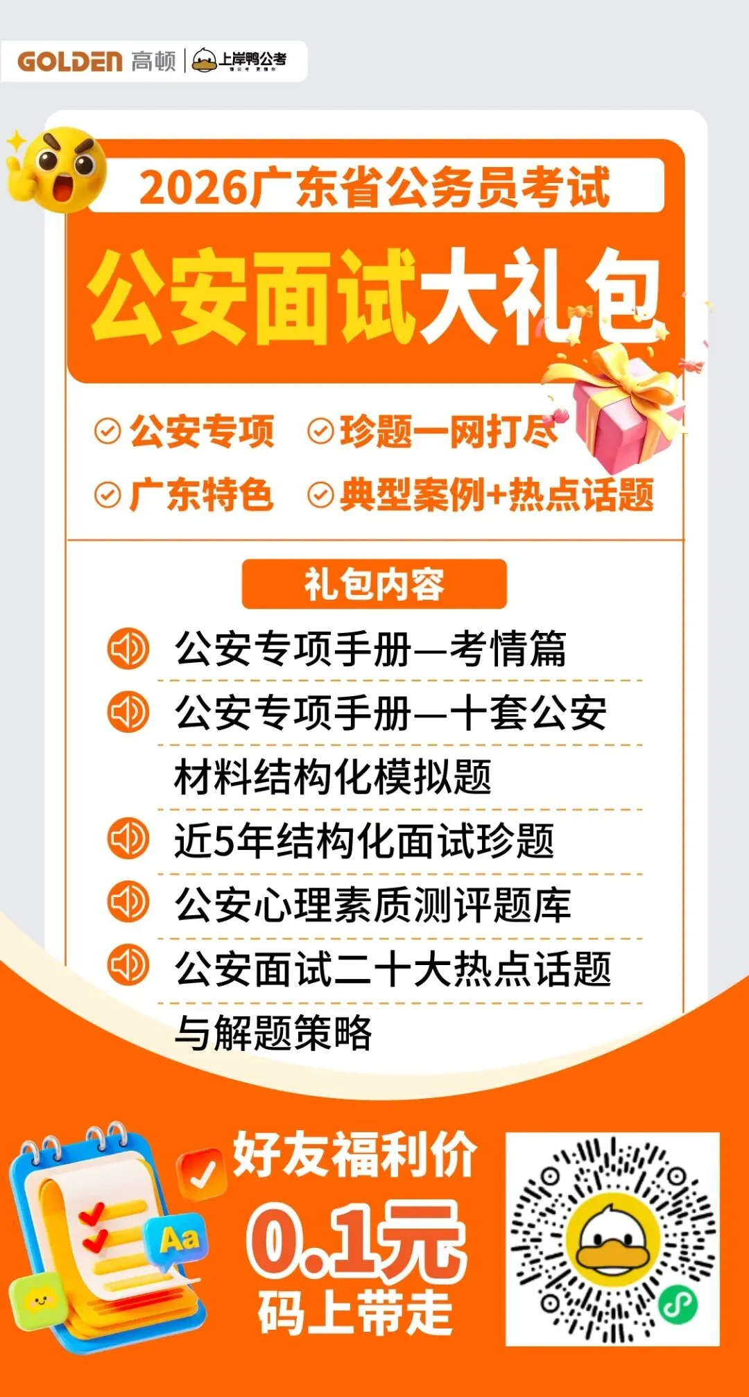 涵盖公an岗位职责解析、常见警务场景应对、人min警察必备热点政策与典型案例,配以全真模拟题及深度解析,强化岗位认知与实战应答能力。