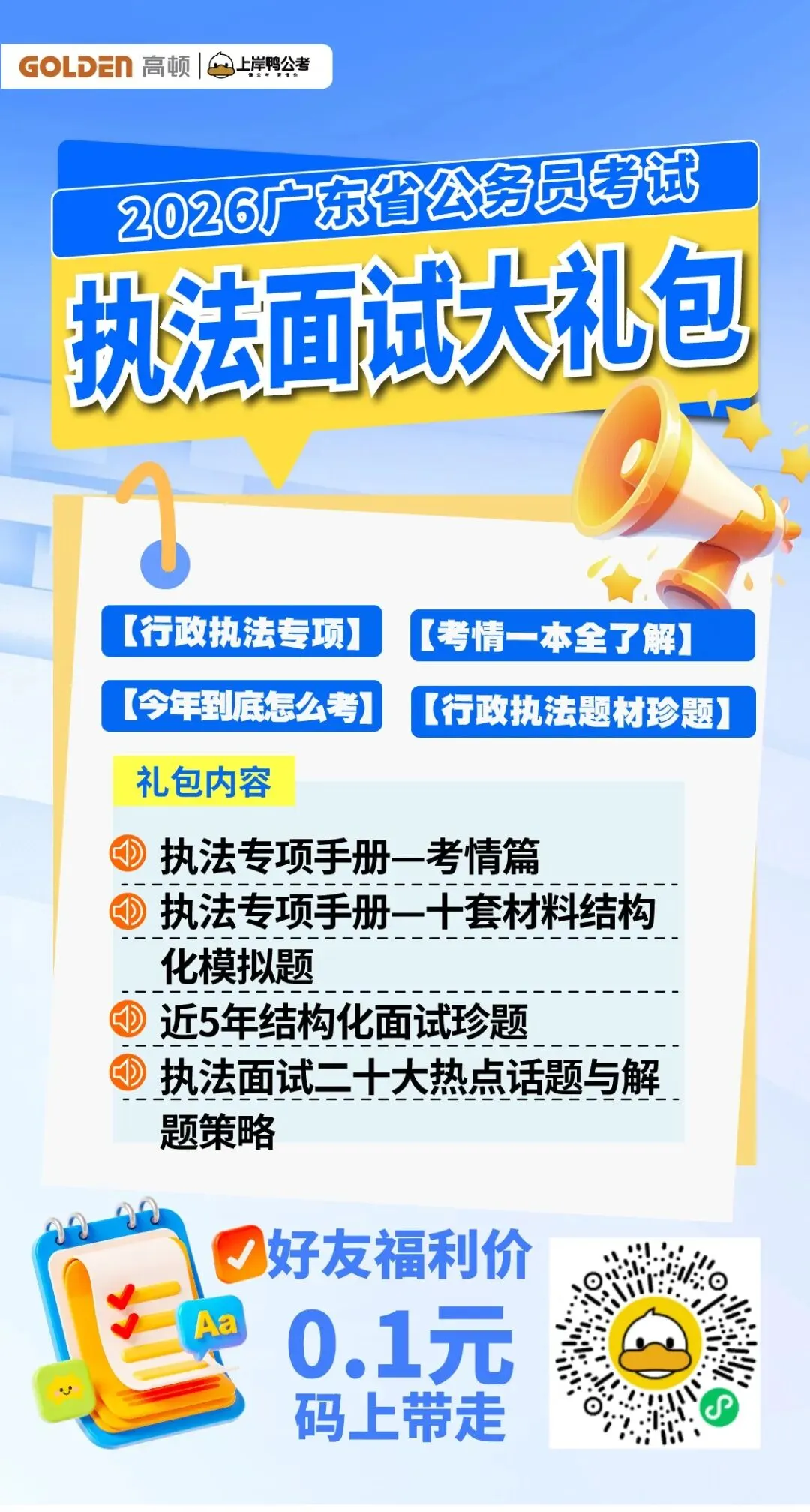 2026年最新研发的《广东省考材料结构化面试模块精训题本》,是我们教研团队深度分析本省历年考情与ming题趋势后的重磅成果。本系列紧扣广东面试“重实务、接地气、看格局”的鲜明特点,对核心能力模块进行靶向攻坚与场景化深耕,显著提升训练的精准度与实战效能。