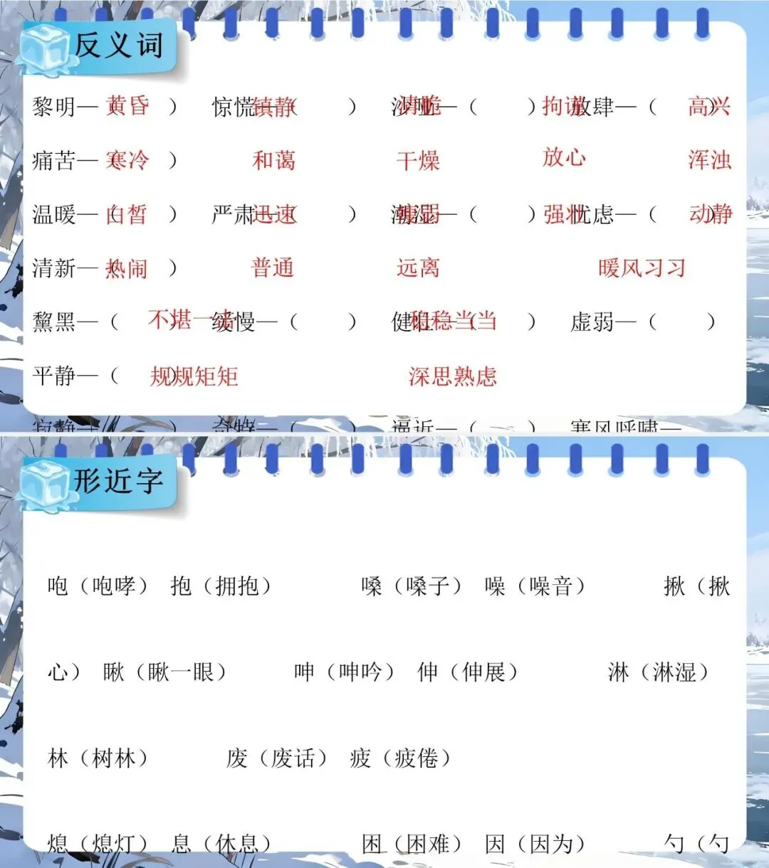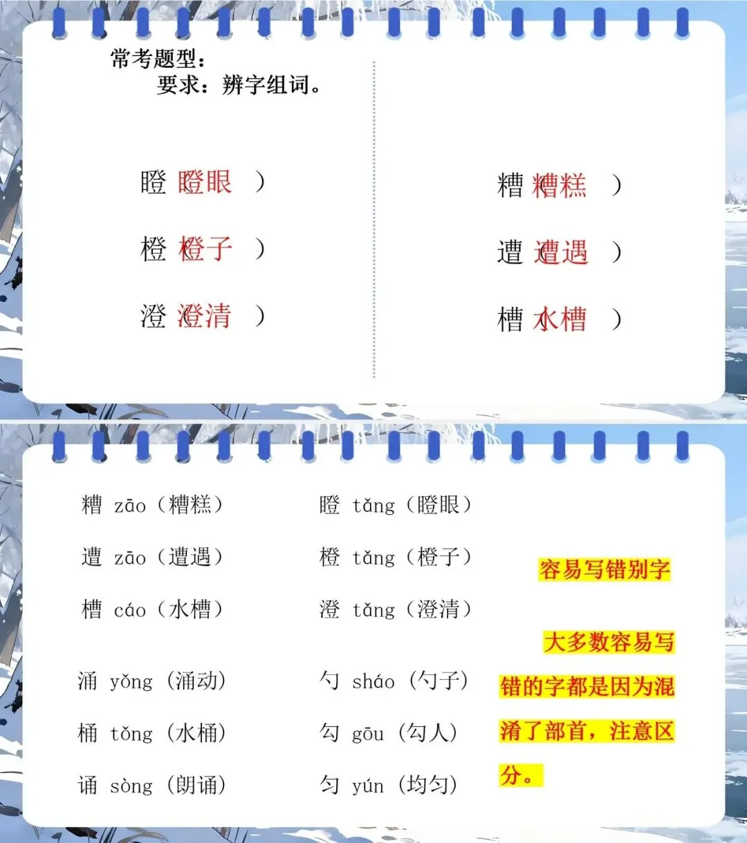 1.掌握易错字、多义词、多音字,正确运用“忐忑不安”“自作自受” 等词语并分类。