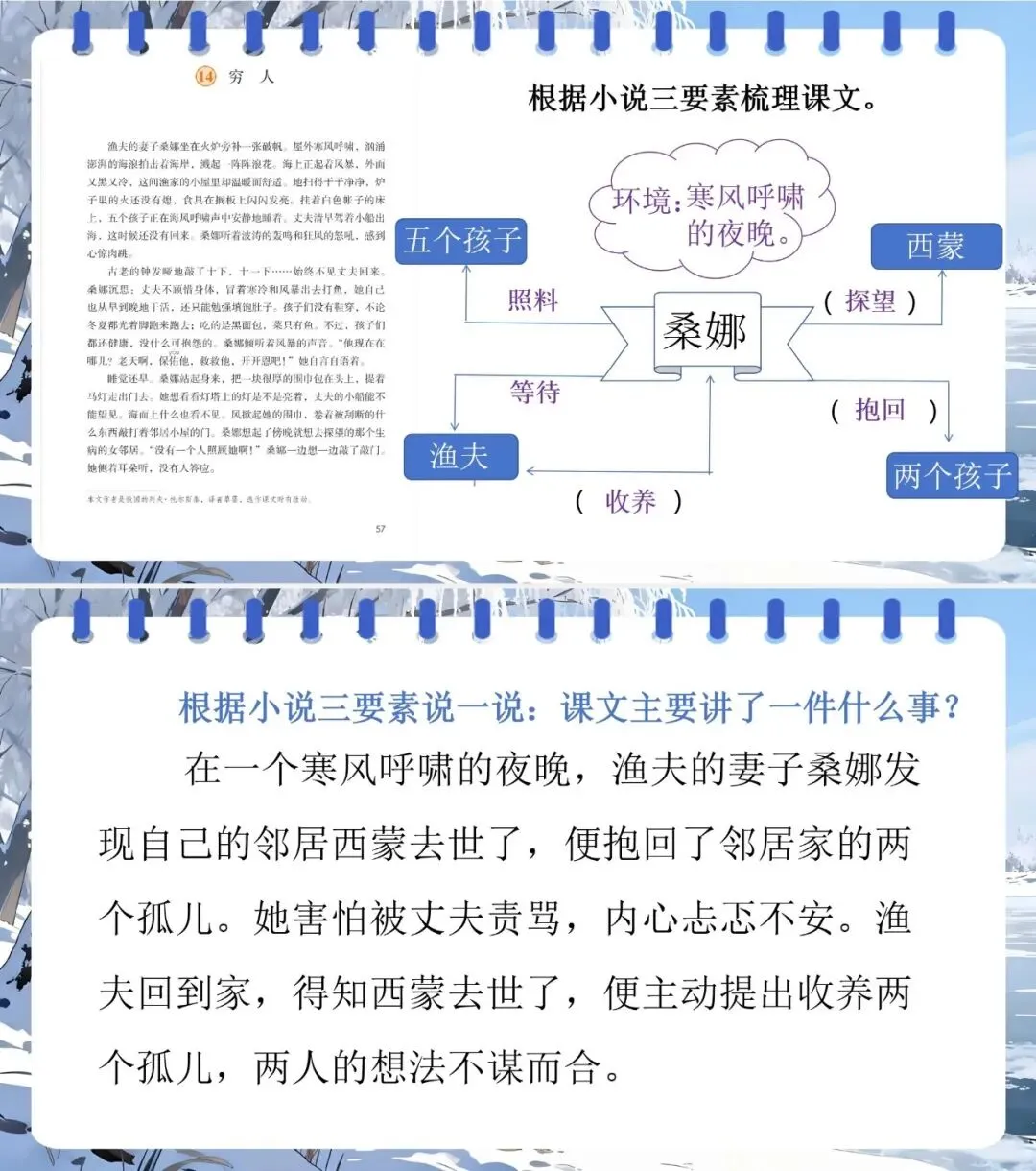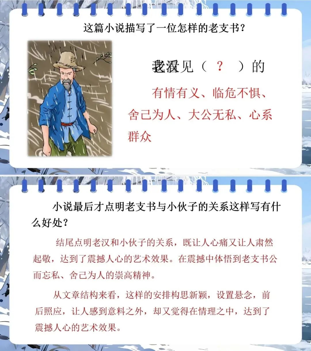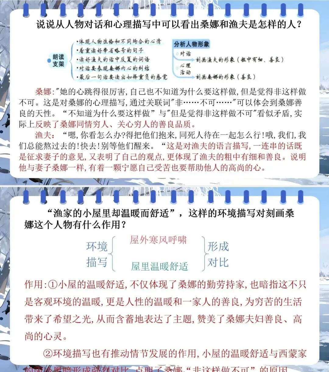 2.用“人物描写、情节、环境” 分析老支书、桑娜等形象,理解三篇小说主旨。