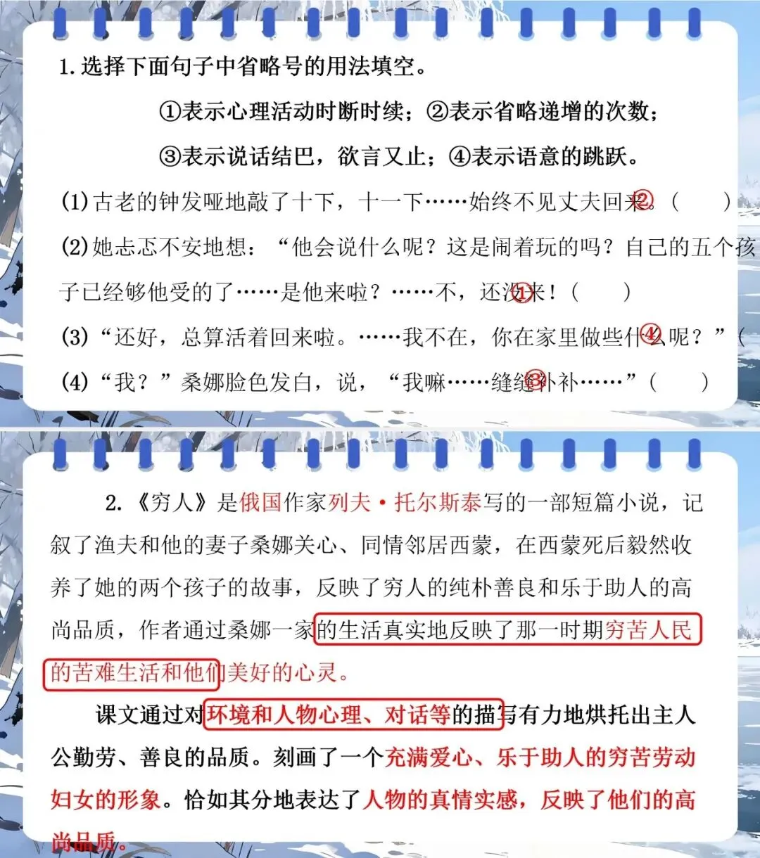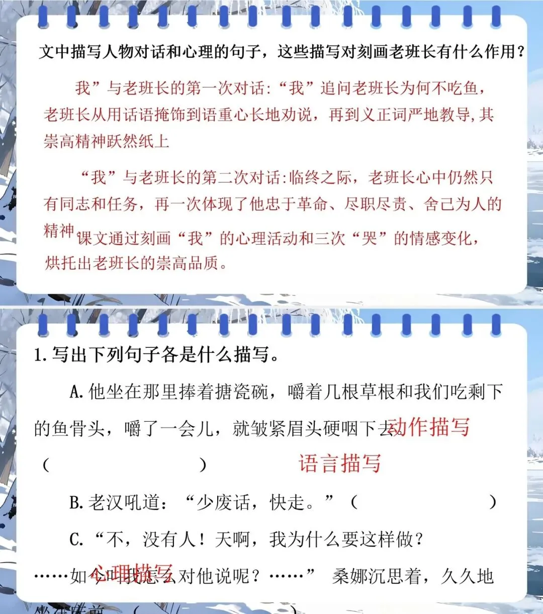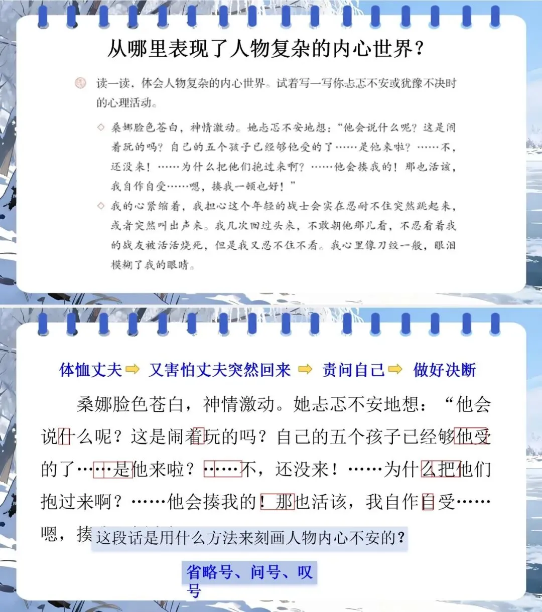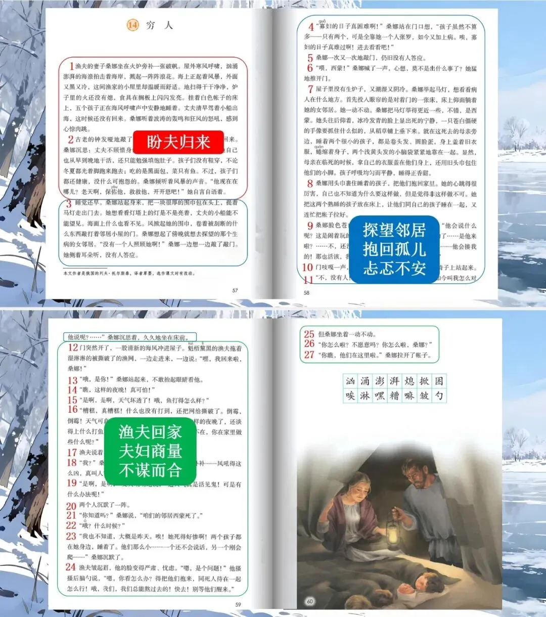 2.用“人物描写、情节、环境” 分析老支书、桑娜等形象,理解三篇小说主旨。