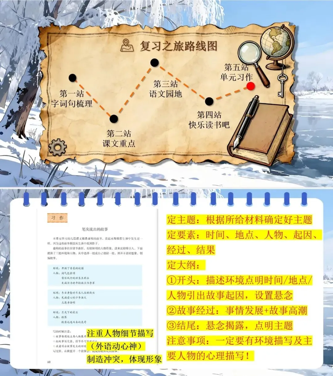 3.用“内心独白、动作神态” 刻画心理,结合 “环境 + 人物” 创编情节完整的故事。
