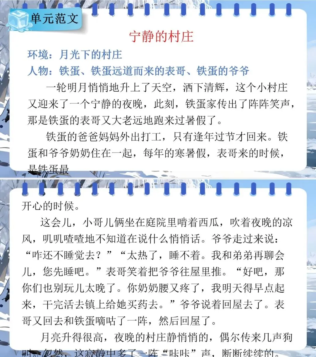 1.掌握单元重点字词句,熟练运用“抓人物、析情节、品环境” 解读小说,能刻画心理活动、创编完整故事,提升语言表达精准性与创造性。