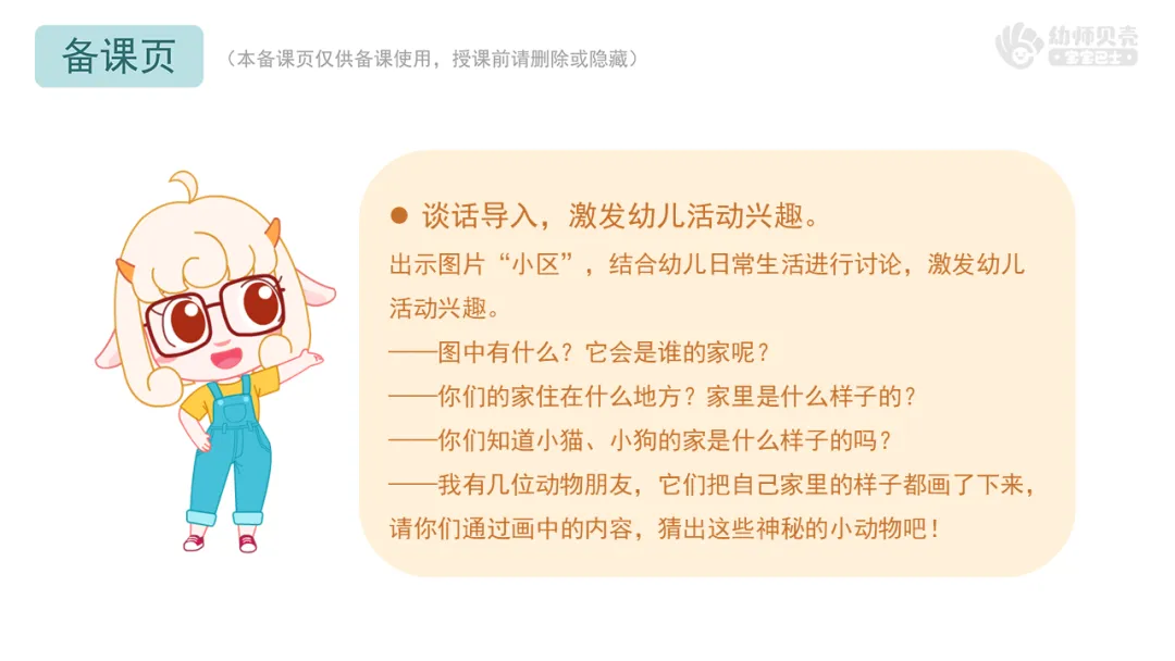 ——我有几位动物朋友,它们把自己家里的样子都画了下来,请你们通过画中的内容,猜出这些神秘的小动物吧!