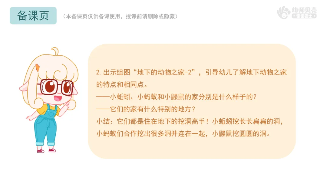 2.出示组图“地下的动物之家-2”,引导幼儿了解地下动物之家的特点和相同点。