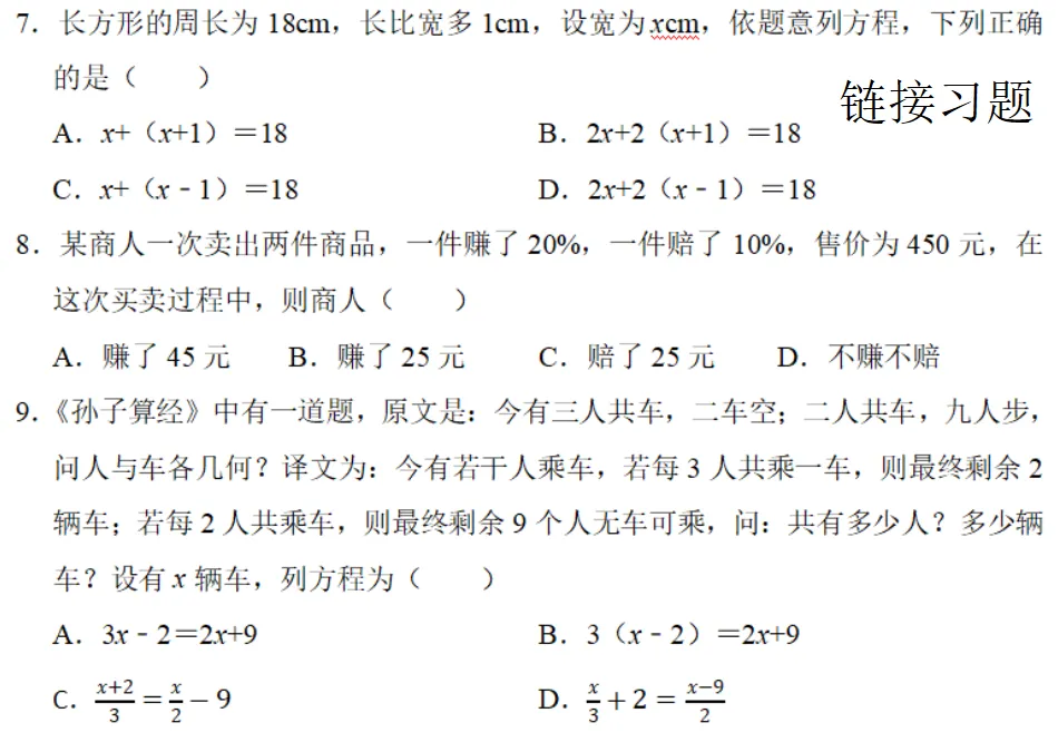 >同步课件--七上期末总复习 第五章 一元一次方程