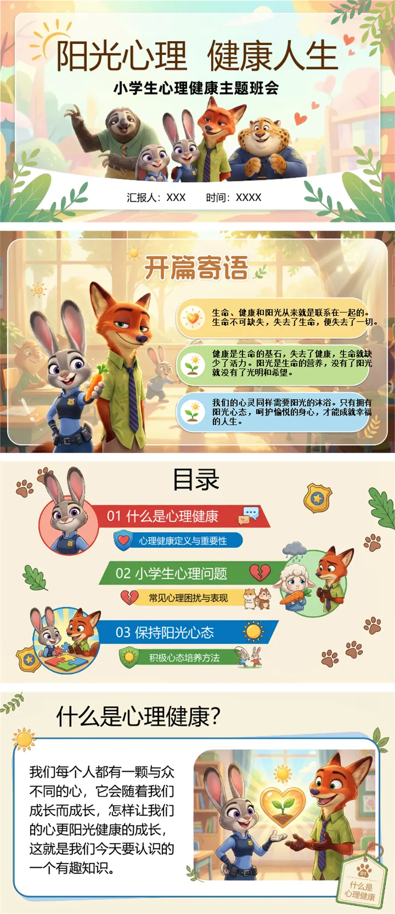 制作包含心理健康定义、常见问题、调节方法等内容的PPT 课件。