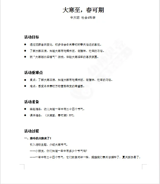>幼儿园中大班_社会科学_课件《大寒至,春可期》PPT+教案+活动反思+纸面教具共享