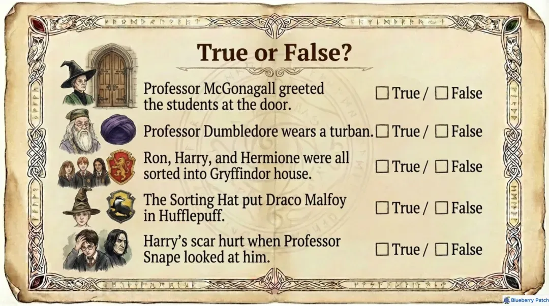 有判断题(True or False)来检查细节,比如“海格是不是骑着飞天摩托来的?” ; 甚至还有深度思考题,比如“为什么哈利在动物园会对那条蛇产生同情?”引导孩子理解哈利的孤独感 。
