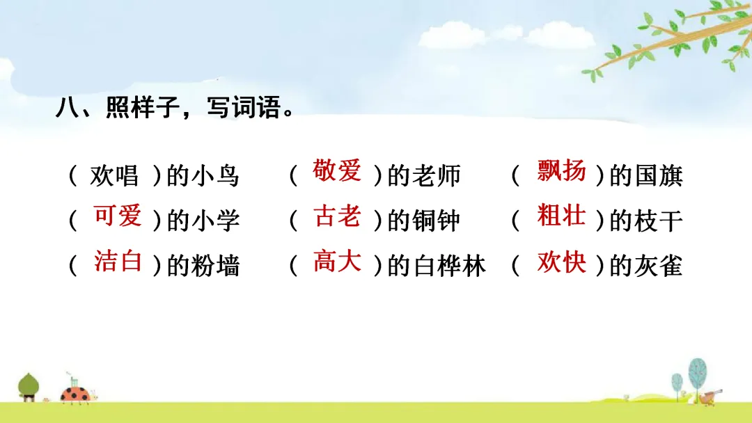 小麻雀—叫人愉悦;老鹰一 雄健勇猛;蚂蚁—勇敢忠贞。这说明作者通过