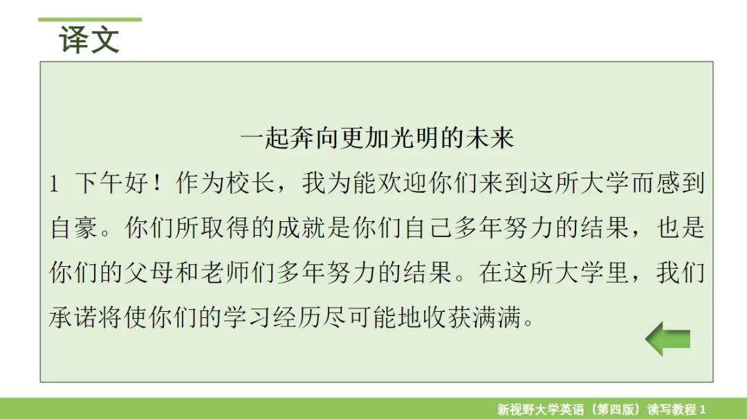 《新视野大学英语》(第四版)读写教程1思政智慧版-郑树棠 课文翻译+课后习题+PPT免费下载(课文译文在PPT最后)「新视野大学英语(第四版)读写教程1」,点击链接或复制整段内容,打开「夸克APP」即可获取。链接:
