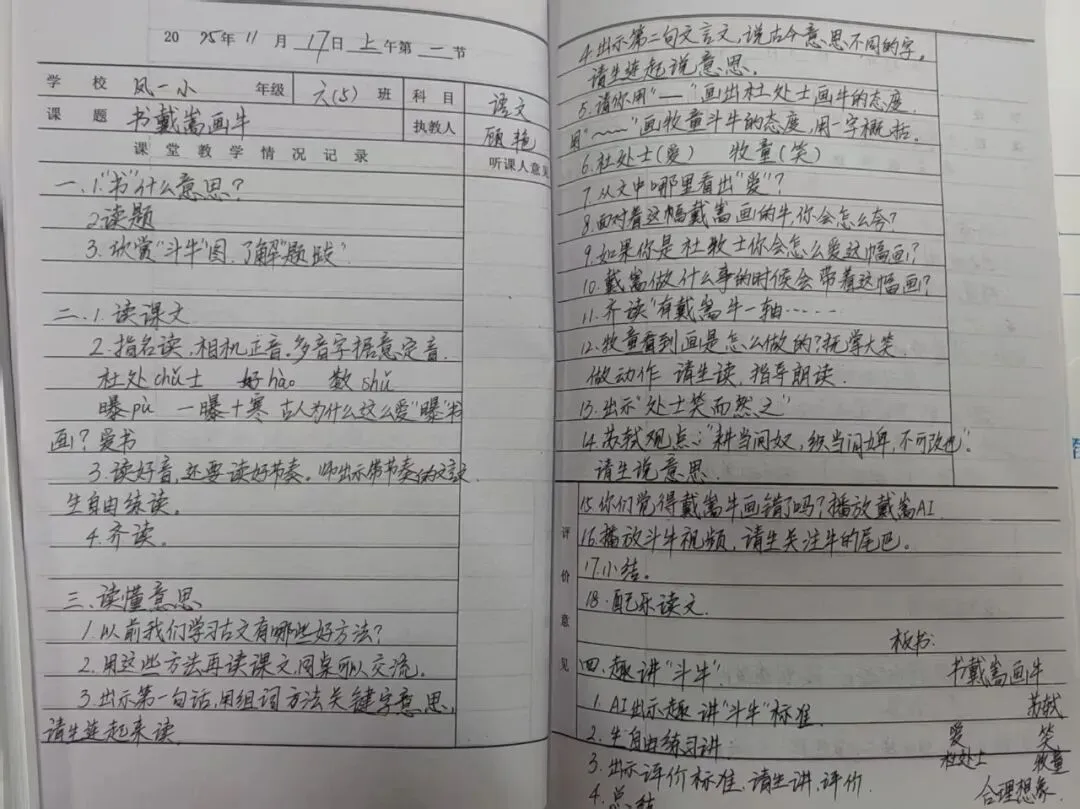为进一步深化教学管理,落实“双减”政策要求,提升教育教学实效,近日,凤一小教导处组织开展了本学期末教案与听课笔记专项检查工作。此次检查作为本学期教学流程的最后一次系统性核查,旨在全面总结与评估一学期以来教师的日常教学准备与专业研修情况,面向全体任课教师展开。