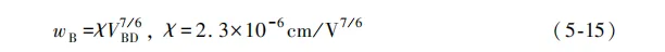 对于非穿通(Non-Punch Through,NPT)设计,击穿电压 VBD 与基区参数的关系由式(5-1)给出。