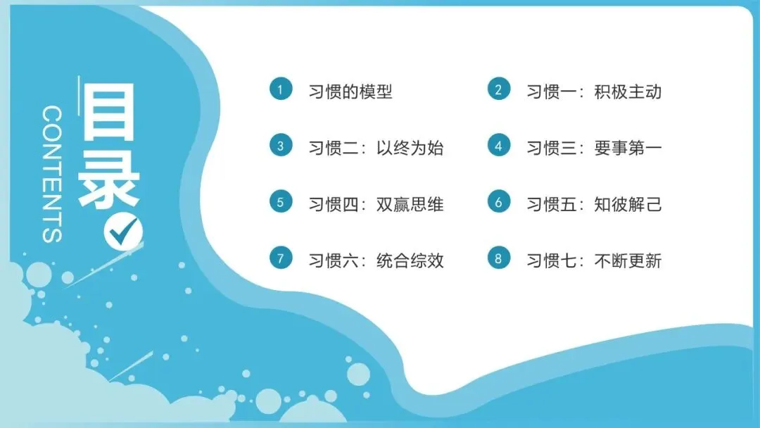 七个习惯的核心逻辑是“从内而外的重塑”:先通过习惯1-3实现“自我掌控”,建立高效的内在基础;再通过习惯4-6实现“协作共赢”,拓展外在的价值边界;最后通过习惯7实现“持续更新”,保障高效能的长期可持续。