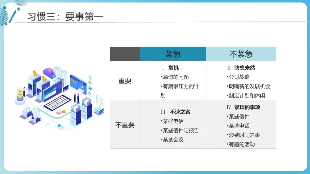 习惯3:要事第一(Put First Things First)—— 优先处理“重要但不紧急”的事