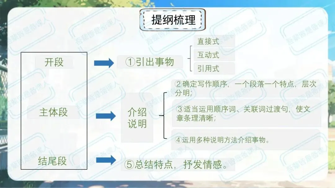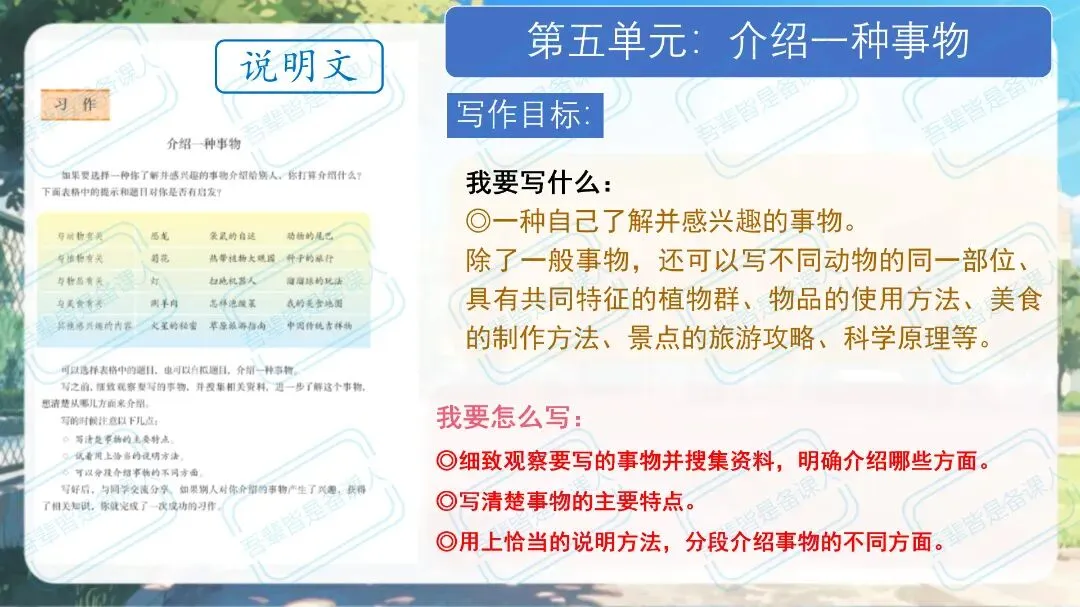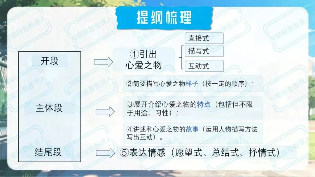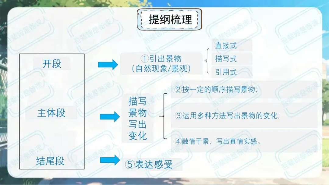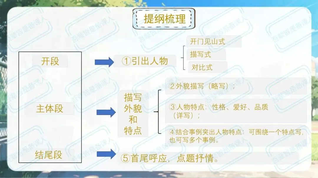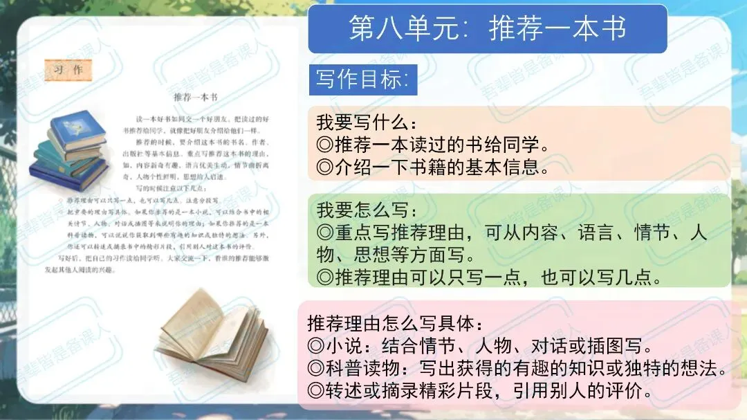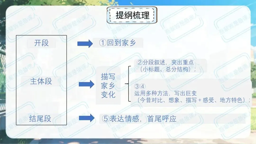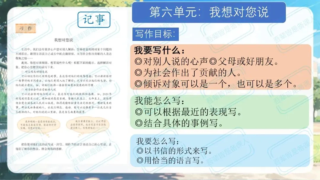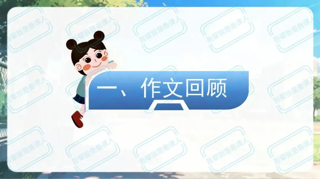 这份五年级上册同步作文复习课件,紧扣高年级习作能力进阶要求,以 “回顾基础 — 方法精研 — 实战迁移” 为核心逻辑。