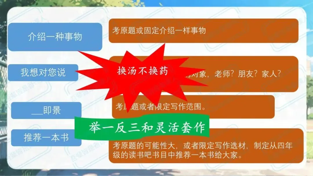 设计思路:归类作文类型、划分考点优先级,提供针对性的写作方法和框架。考点优先级划分