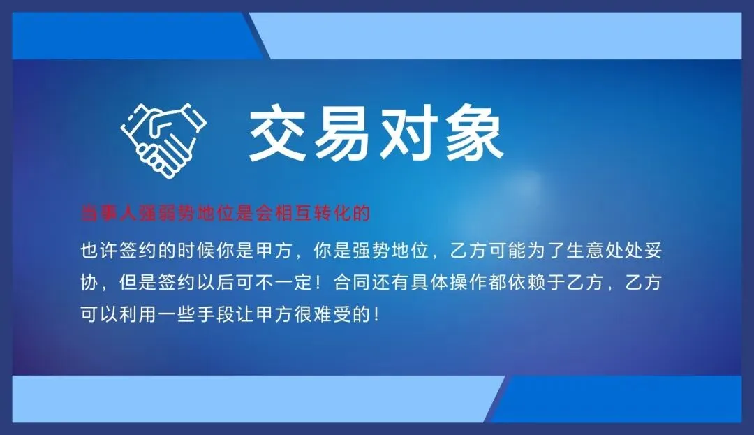 我们为什么要签一份合同?谁也没事不会闲着,签一个合同我们是要签一个合同,是因为我们要做一个生意或者是做一项业务,而且是自己无法独立达成的,是需要与客户或者是合作伙伴共同去达成的,这个时候我们需要签合同,因此合同体现的是交易承载的是生意,业务是内容,合同是形式内容决定形式支持内容,所以合同不仅是法律文件,更是商业文件。