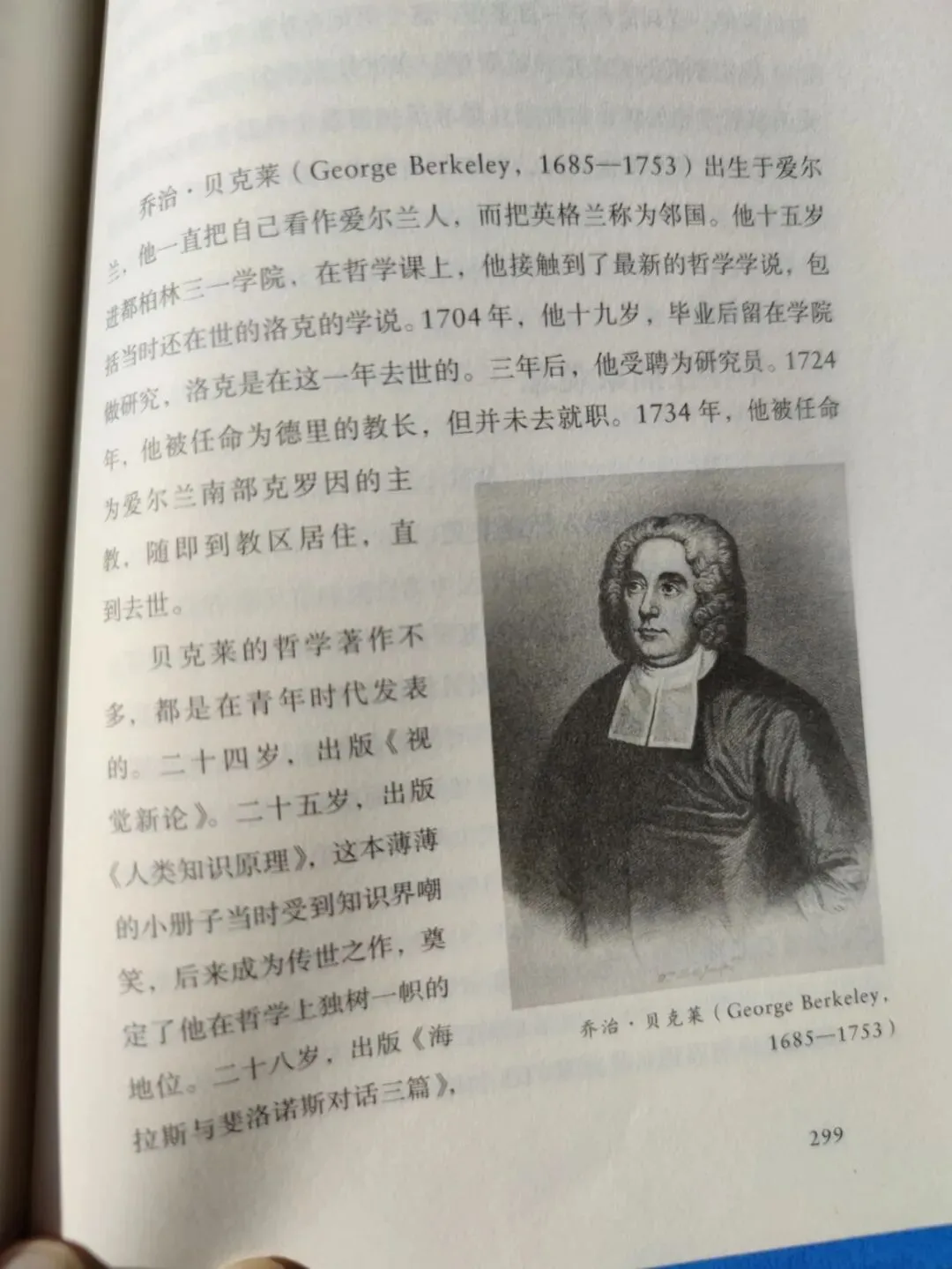 贝克莱的哲学著作不多,都是在青年时代发表的。二十四岁,出版《视觉新论》。二十五岁,出版《人类知识原理》,这本薄薄的小册子当时受到知识界的嘲笑,后来成为传世之作,奠定了他在哲学上独树一帜的地位。二十八岁,出版《海拉斯与斐洛诺斯对话三篇》。