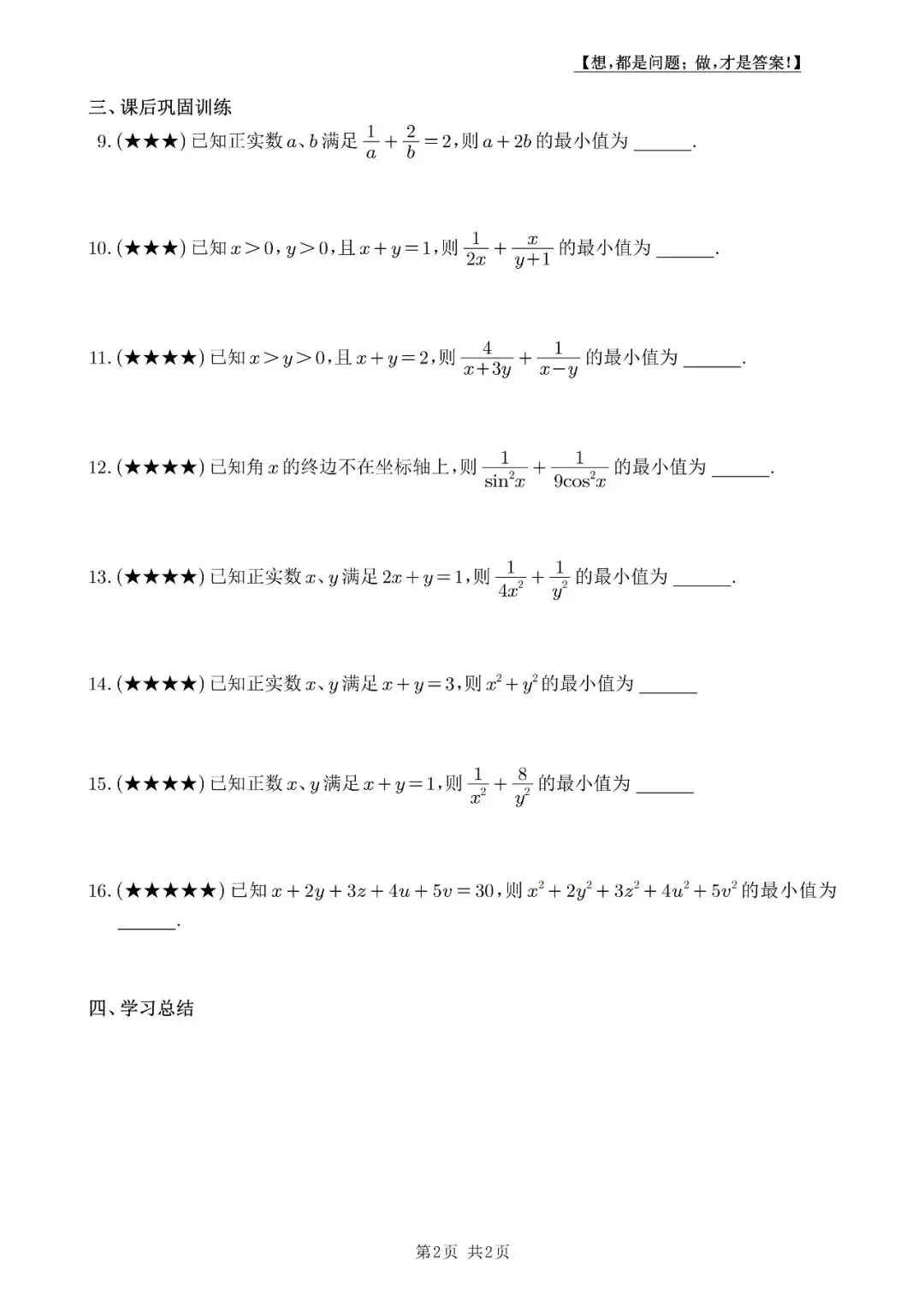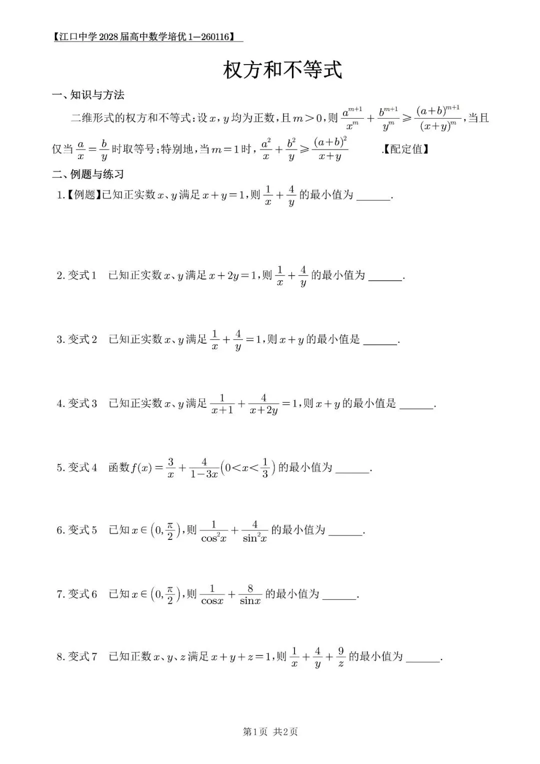 【2028届培优讲义1】权方和不等式
