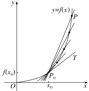 如图,在曲线y=f(x)上任取一点P(x,f(x)),如果当点P(x,f(x))沿着曲线y=f(x)无限趋近于点P0(x0,f(x0))时,割线P0P无限趋近于一个确定的位置,这个确定位置的直线P0T称为曲线y=f(x)在点P0处的切线.