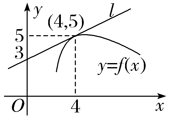 7.如图,直线l是曲线y=f(x)在x=4处的切线,则f'(4)=