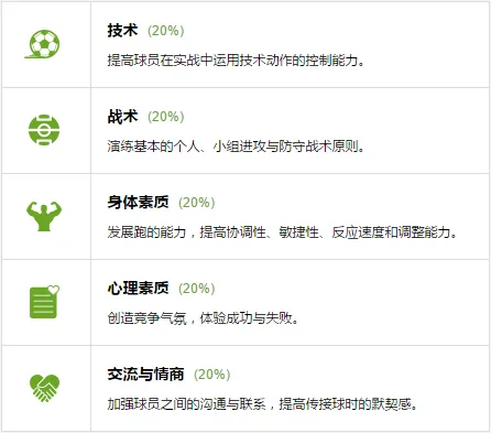 目标是提高球员在边路的跑位和配合能力,同时发展球员的速度、力量、耐力等身体素质。该教案共分为五个环节,教练可根据实际训练需要自行添加放松等环节。