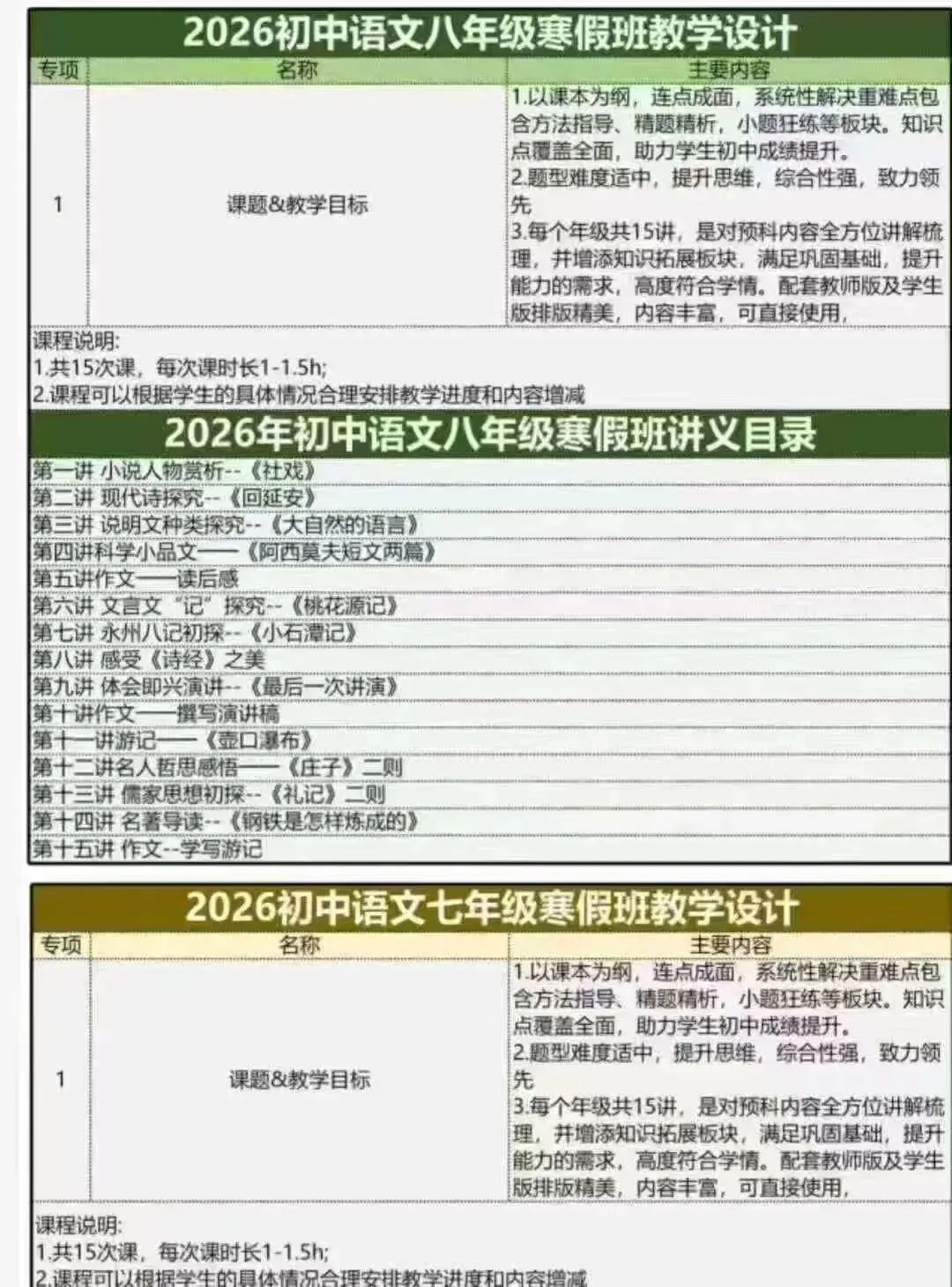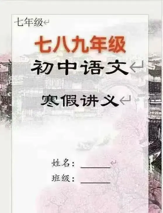 5.纯Word、无水印、无logo可修改的《初中语文寒假讲班义(内含三年个级、教师版、学生版)》