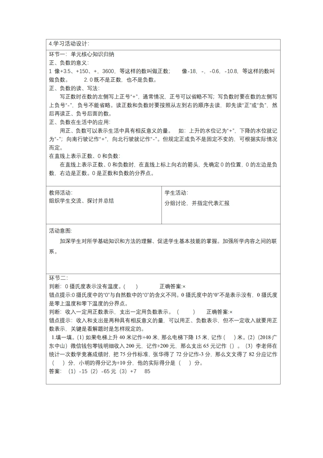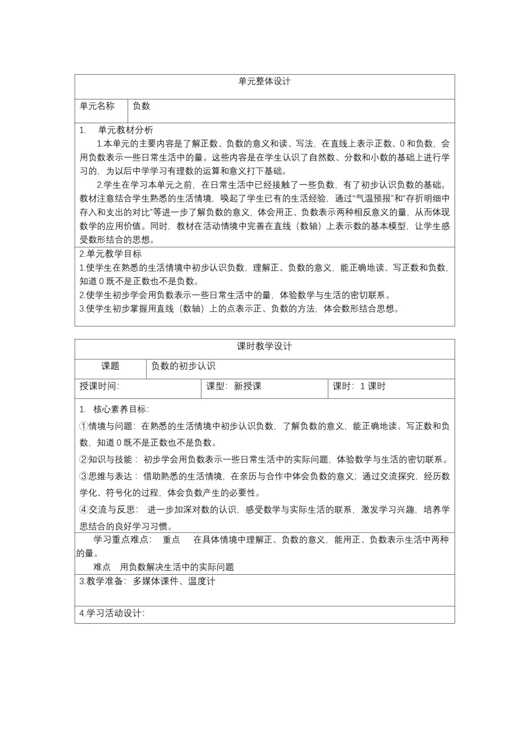 教版小学数学六年级下册核心素养教案