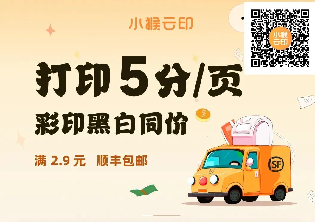 打印1页只需5分钱,黑白彩色真同价,满2.9元顺丰包邮