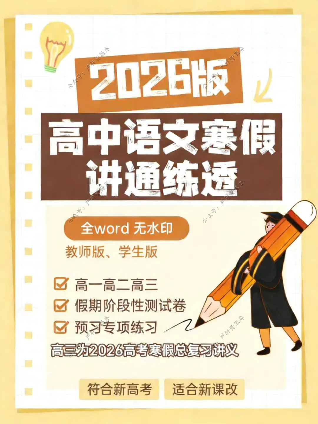 2️⃣『2026高一语文寒假作业」,复习练习巩固语文能力,旨在让孩子在长长的假期能够所有练习。教师版+学生版
