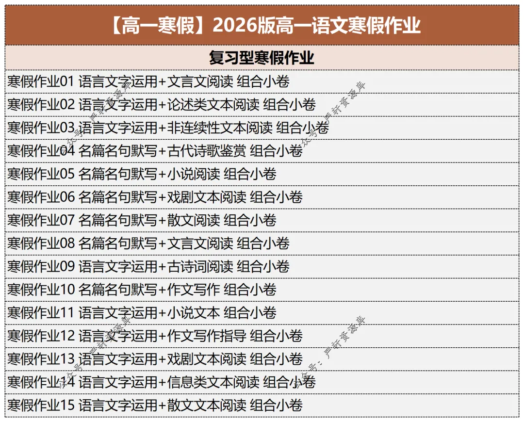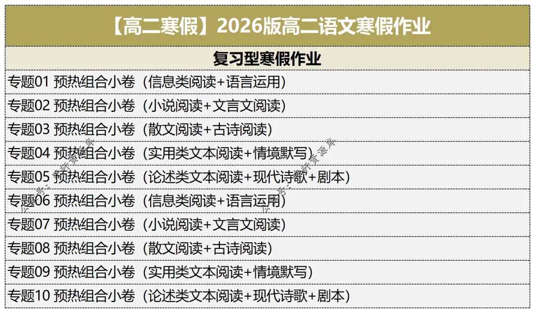 4️⃣『2026高二语文寒假作业」(为复习型作业练习),复习练习巩固语文能力,旨在让孩子在长长的假期能够所有练习。教师版+学生版
