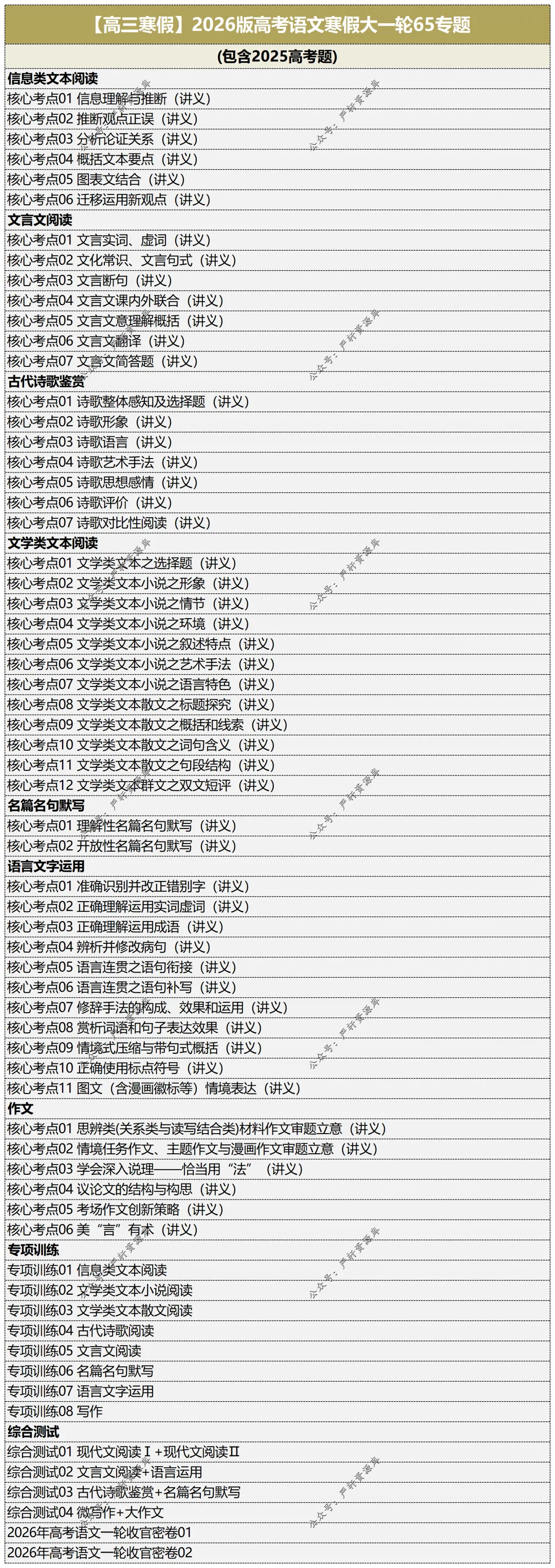5️⃣『2026版高考寒假大一轮讲义」,全word,讲练结合,精讲细练习。知识点详细,例题经典,变式题规范,并且含有命题规律解读。备考策略等内容。并配专项训练。教师版+学生版。