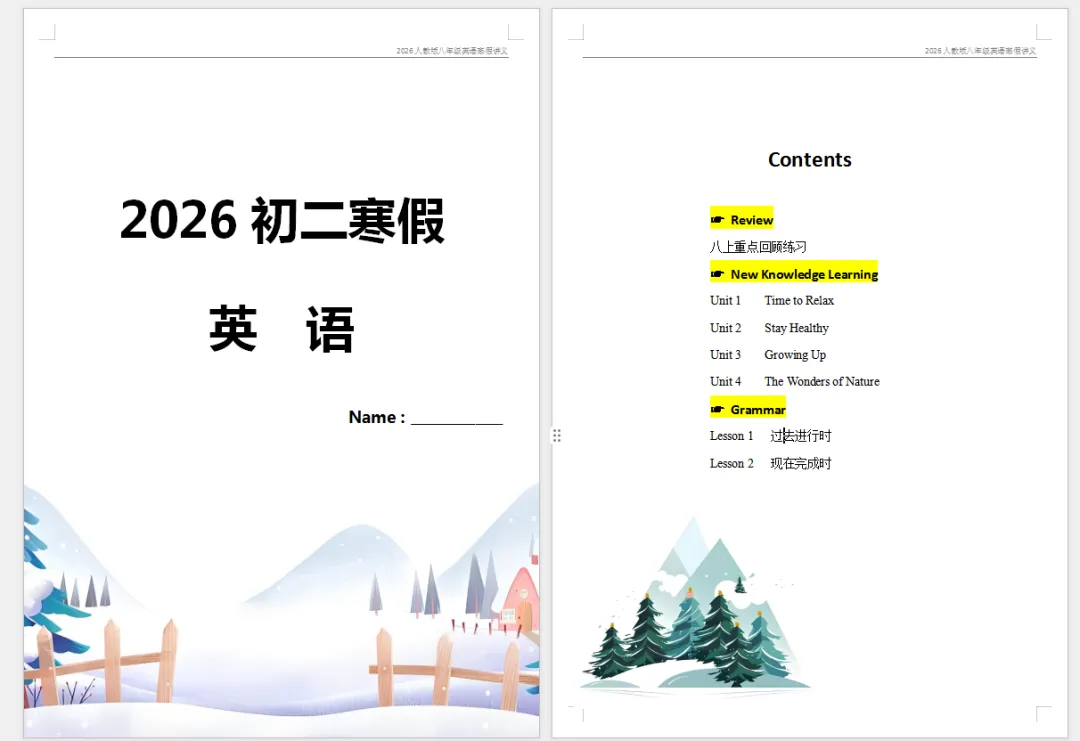 >2026新人教八年级寒假衔接讲义94页