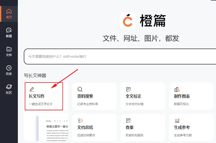 我使用的是橙篇的“长文写作”功能: