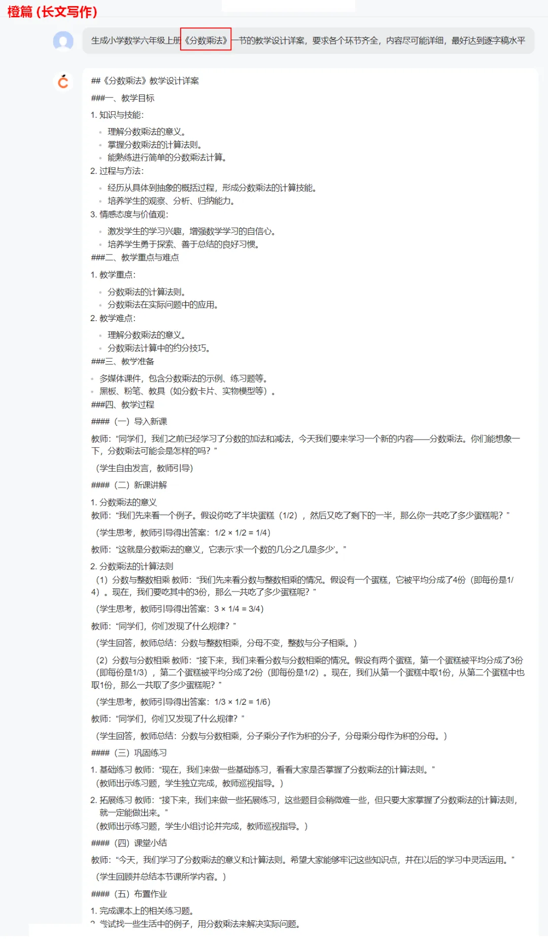 以下是橙篇所作的《分数乘法》的教案: