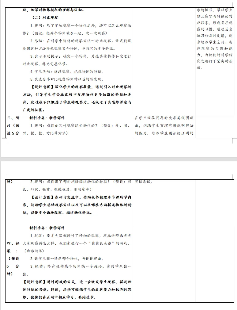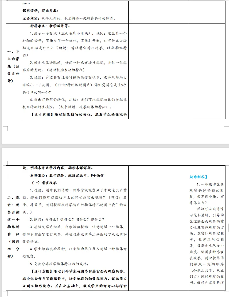 【科学教案课件】新教材教科版版小学科学一年级下册全册表格式配套课件《1.1 观察物体的体征》