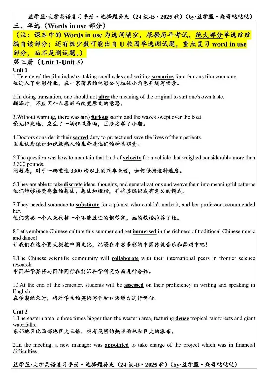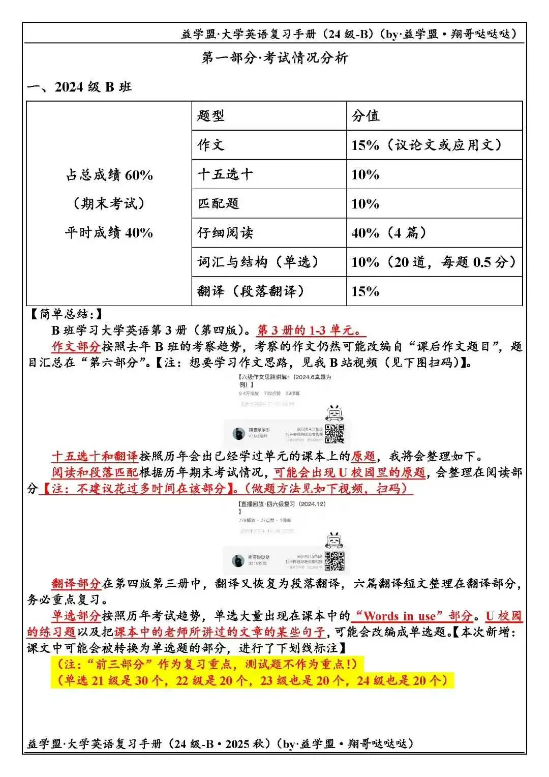>益学盟·24级大学英语B3复习课程&讲义展示【2025秋】