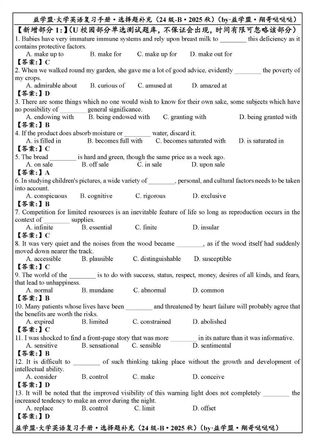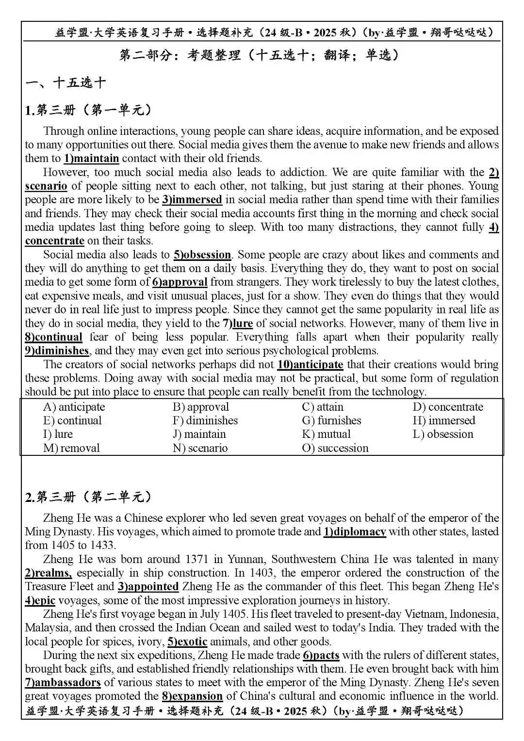 益学盟·24级大学英语B3复习课程&讲义展示【2025秋】