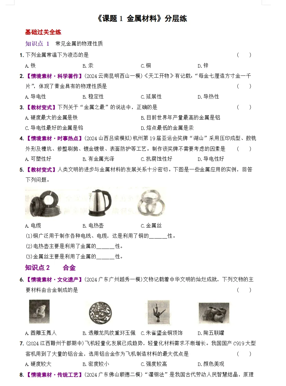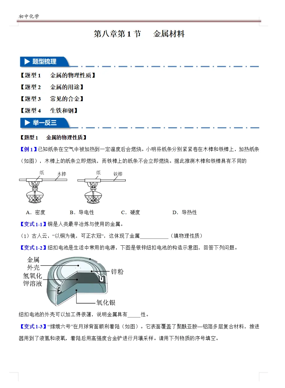 ,人教版9年级下册(化学)寒假预习(题型梳理 举一反三)学生版和教师版,文末可下载PDF电子版